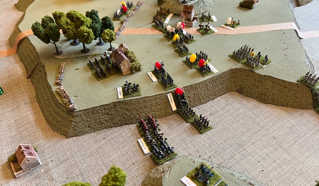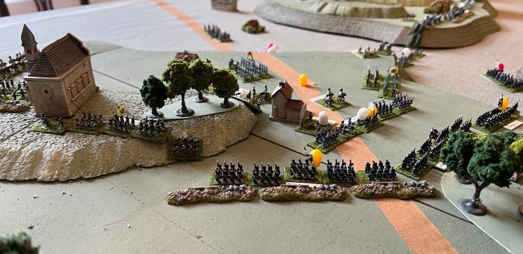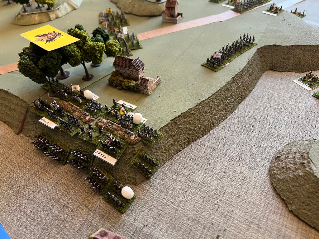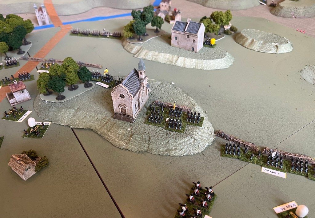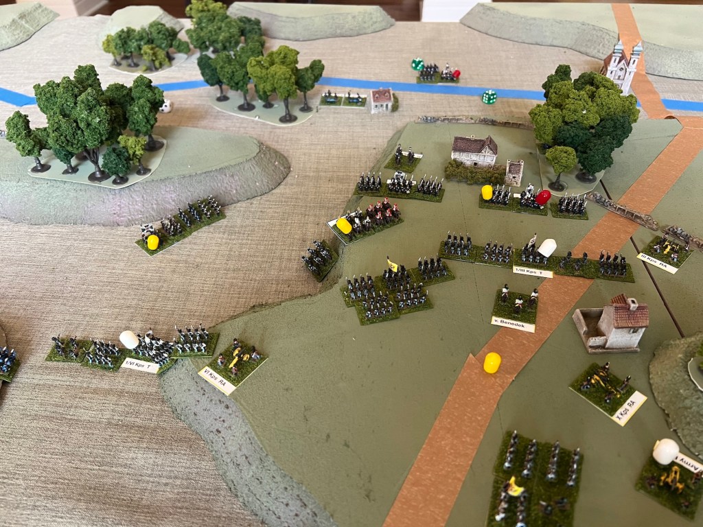 Once again the 4th Divisions attacks out of Ober Dohalitz and once again Brigades Appiano & Benedek force them back into the village. The Prussian Cavalry Korps again doesn’t charge and sits passively.