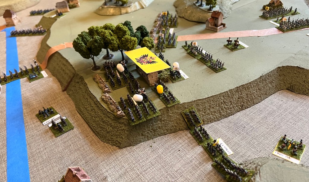 In the center, Brigades Appiano & Benedek are once again order to charge but the brigades falters and remain in-place. The remaining brigades hold their ground to protect the rear of the artillery line.