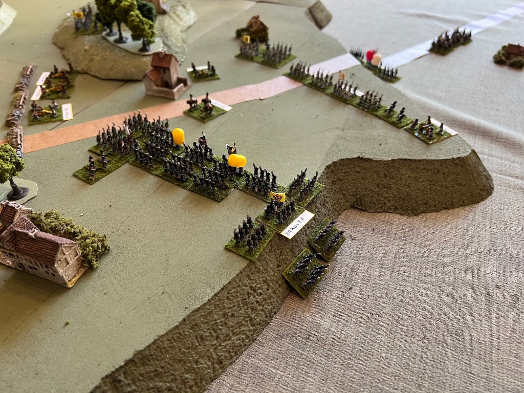 The 14th Divisions turns into the woods and unto the southern flank of the Austrian VIII Korps threatening the Saxon line. The Elbe cavalry is still recovering from their pervious combat and doesn’t move.