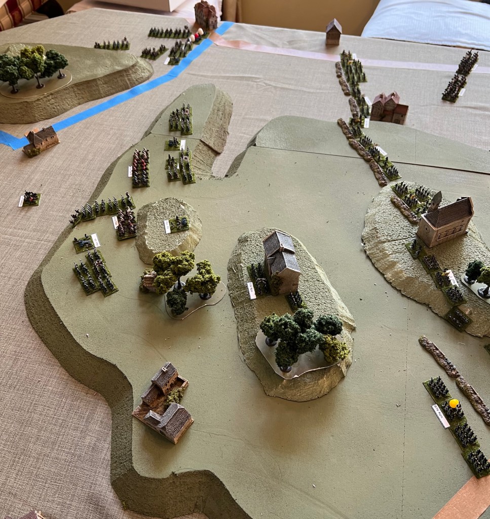Sadowa and Chlum are always Prussian objectives. Die rolls determine the other four Prussian objectives. For this game, the additional objectives are Ober Dohalitz, Popowitz Wald, Nedělišt, and Stěžer.