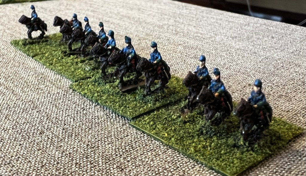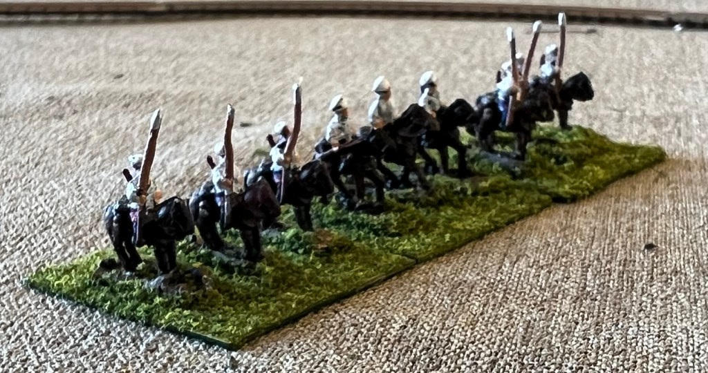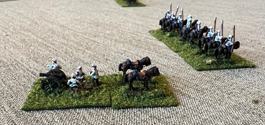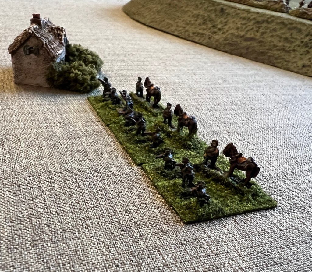 Cavalry on both sides dismounted, so dismount figures were needed. The Baccus line had WW1 dismounted cavalry so again very simple. I would need many dismounted stands and the Baccus package came with 8 dismounted cavalry strips and 2 horse holder strips. Peter allowed me to mix the packaging and I ordered 5 strips of each. That allowed me to create a dismounted stand of three figures and a horse holder with horse.