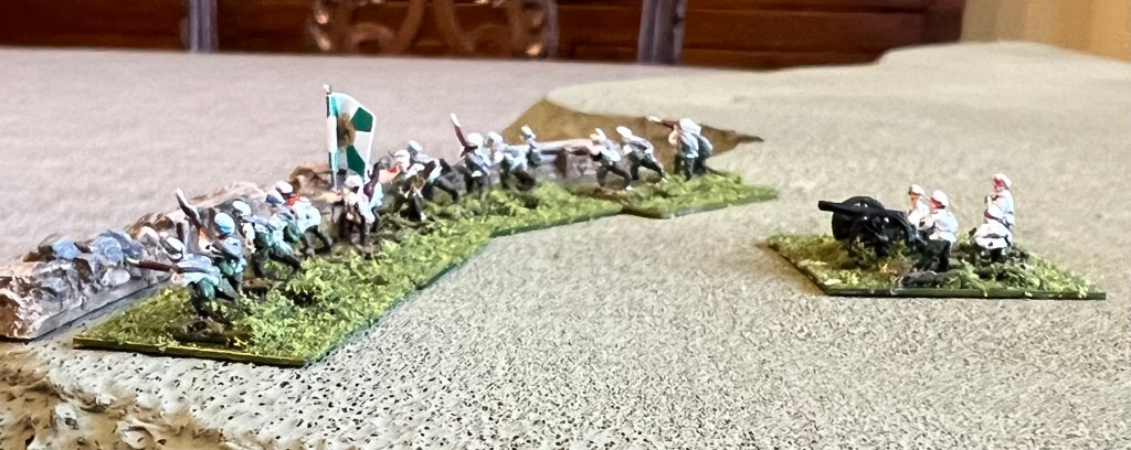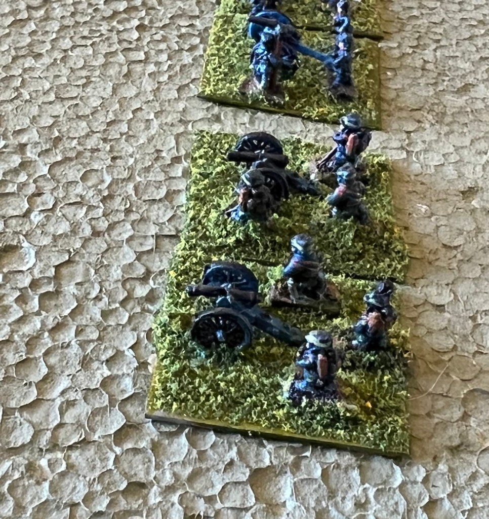 Both sides used mountain guns, but as no good models exist and at this scale it likely won’t matter, mountain guns will used the same artillery stand but labeled as such.